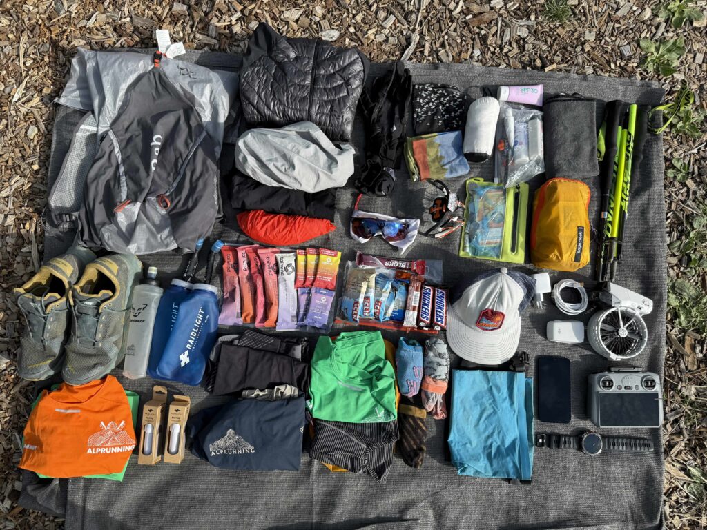 We reizen als mountainrunners, dus geen zware rugzakken: een 15–18L trailvest is voldoende voor alle dagen in de bergen.